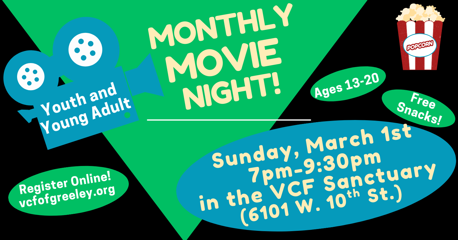Youth (6th grade +) and Young Adults (up to age 20) are welcome! Doors open at 6:45pm. Free Snacks will be served to enjoy during a Christian Movie. All Minors MUST be registered by their parents to attend! You can enter all of your children on the same Registration Form!